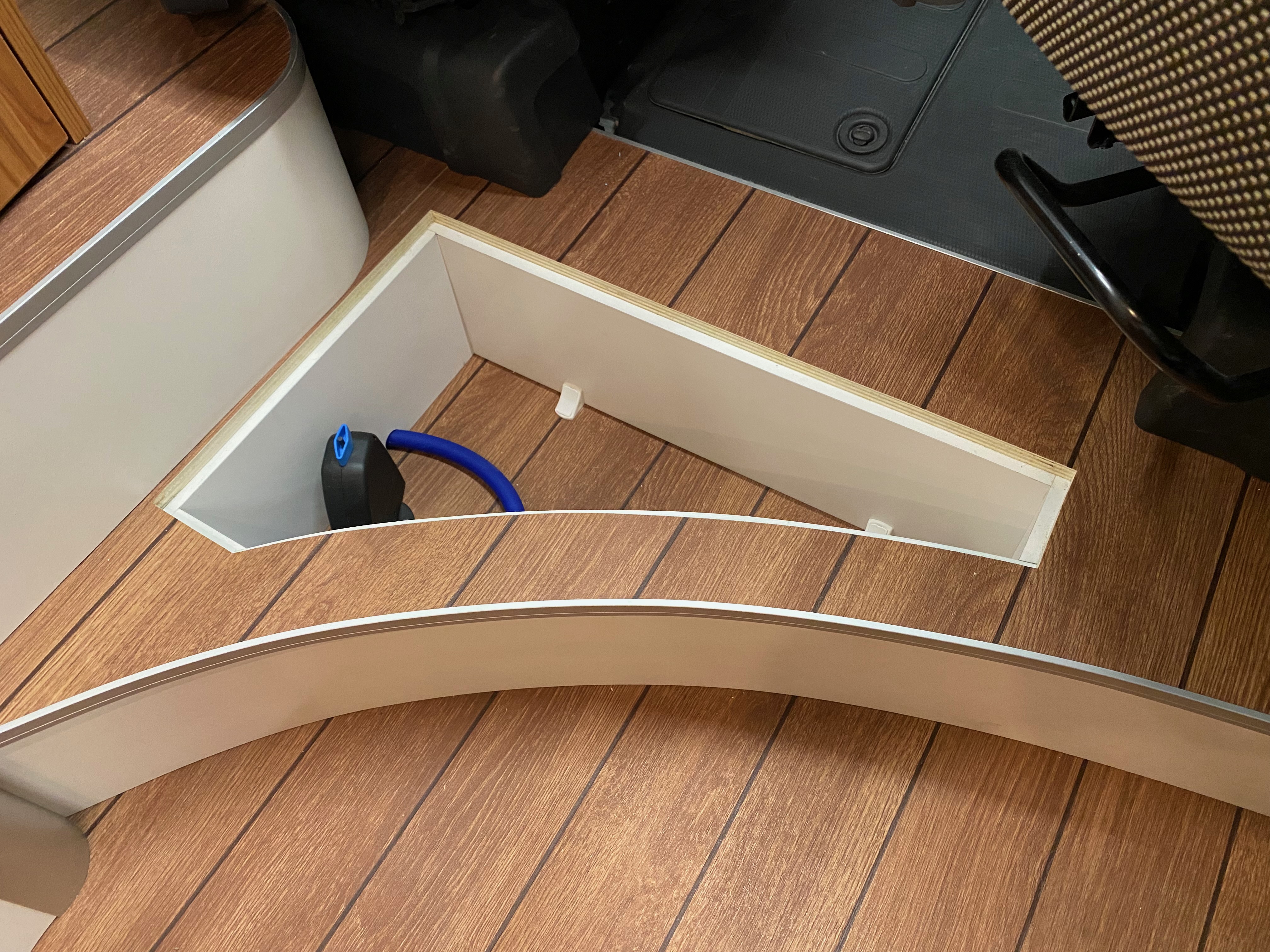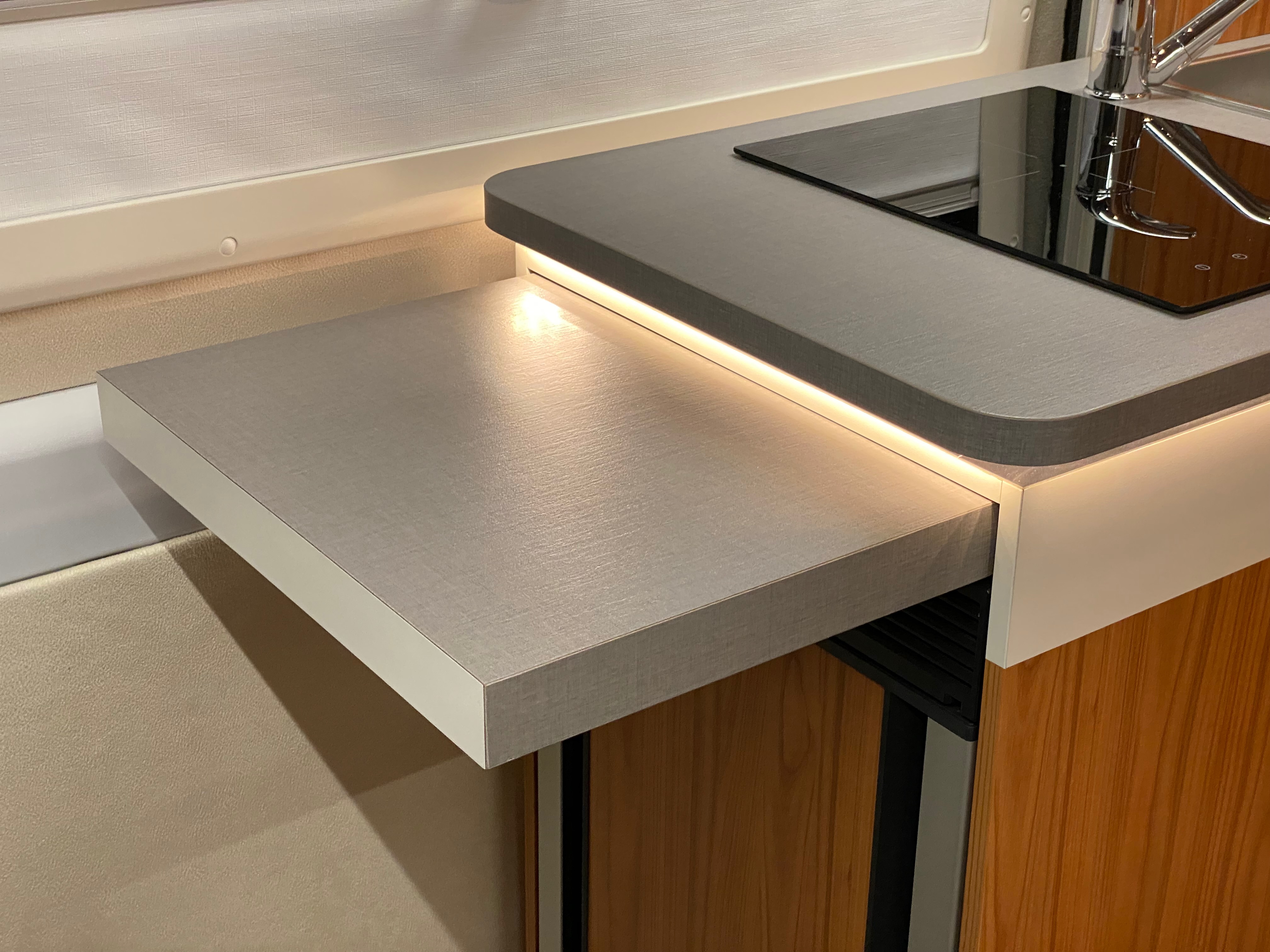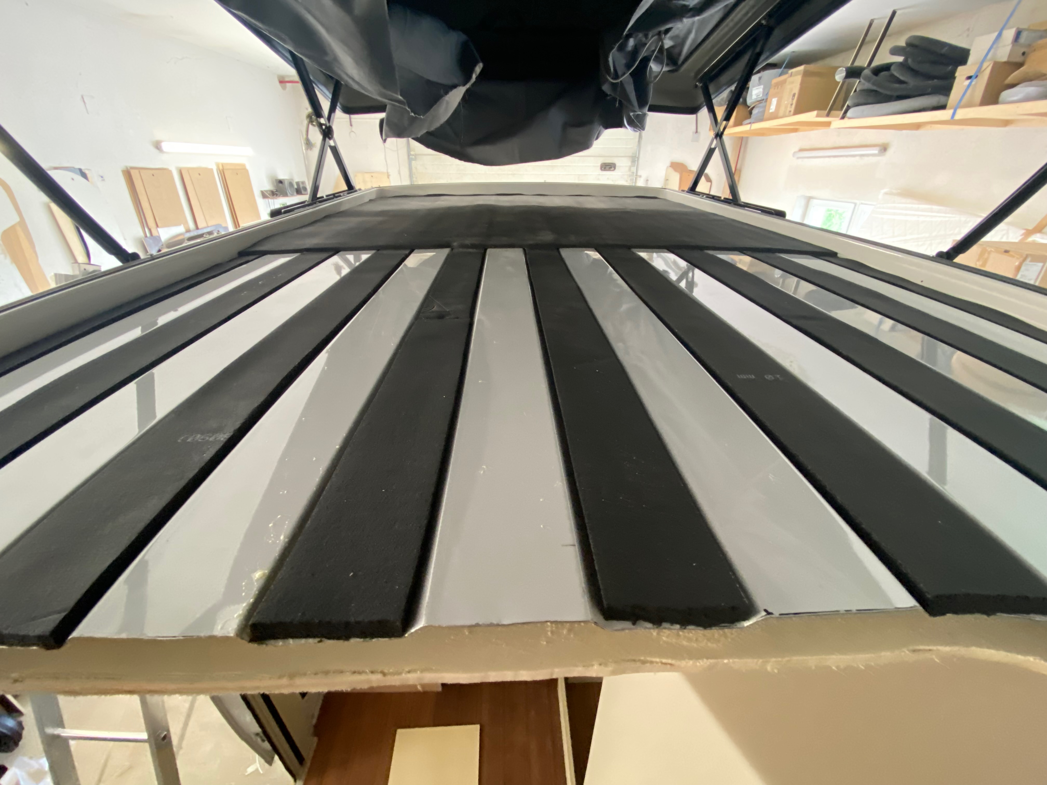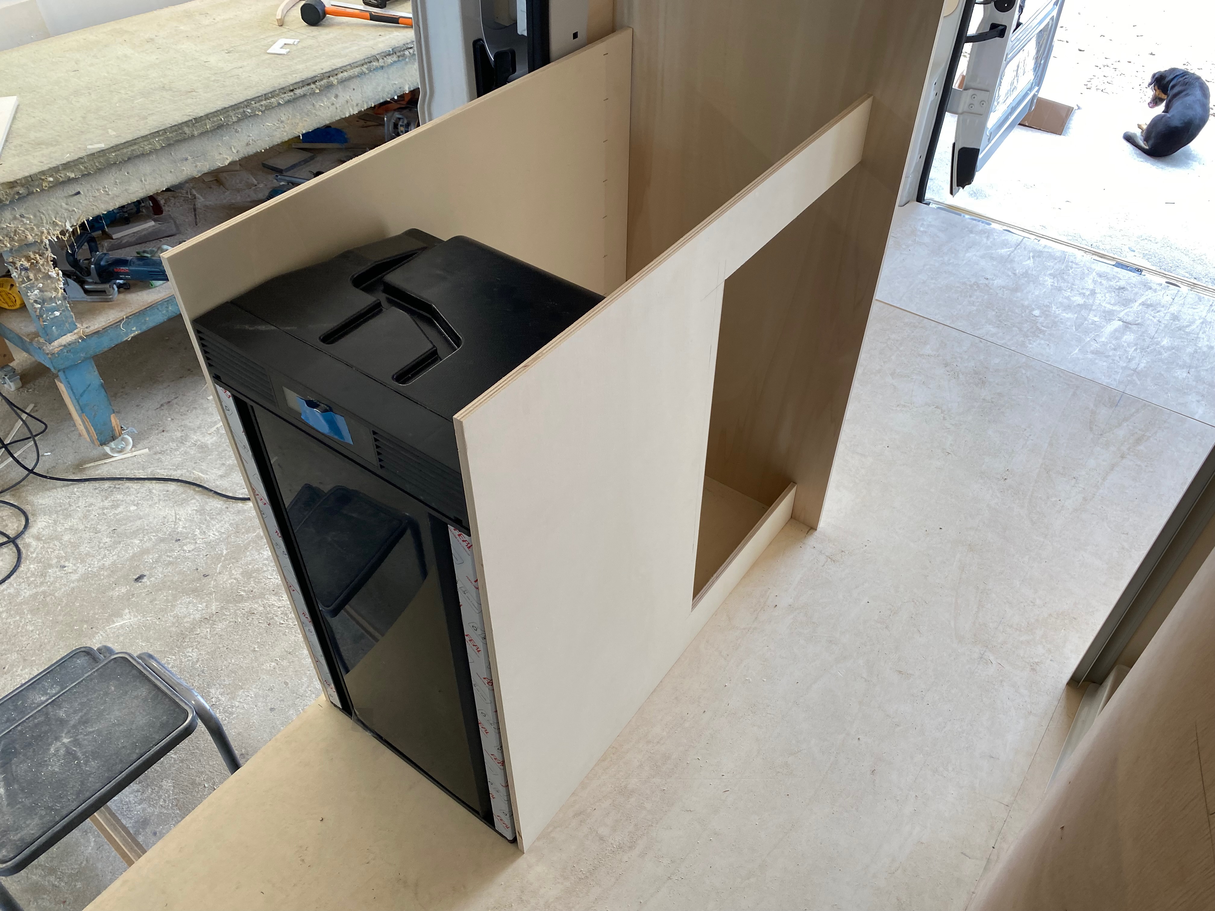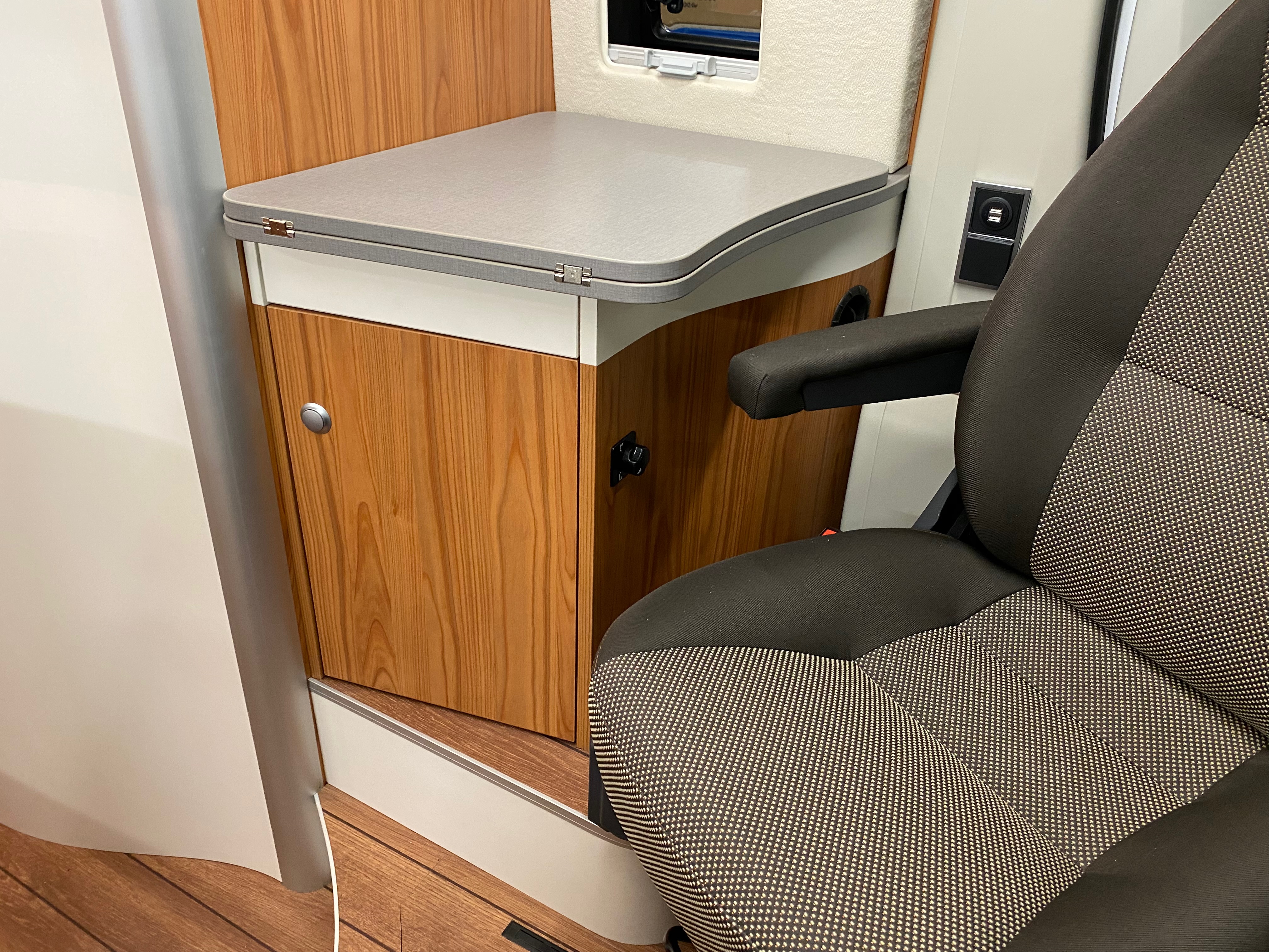 Ezt a lakóautót a SplitT-Pong feltalálóinak készítettük. A jármű érdekessége, hogy nagyon kicsi (5,4m) és bár két személy szállítására alkalmas, mégis két teljes értékű franciaágy van benne. Erre azért volt szükség, mert ha a rakteret megpakolják a találmányukkal, akkor is lehessen aludni a lakóautóban. Ezt egy tetőre szerelt kinyitható sátortetővel oldottuk meg, valamint a hátsó franciaágyat motoros mechanikával láttuk el, hogy fel lehessen húzni a plafonra. Fontos szempont volt, hogy gázmentes legyen a lakóautó de a kicsi mérete miatt a konyhában nem fért el a diesel főzőlap, így indukciós főzőlapot építettünk be, aminek következtében már az ólomsavas akkumulátor nem volt megfelelő, ezért 200Ah lítium-os (LiFePO4) akkumulátor rendszert építettünk ki. A feltöltés 3 módon lehetséges. 220W napelem, 18A-es DC-DC töltő menet közben és egy 70A/1600W-os Victron MultiPlus töltő/inverterrel, ha hálózatra van kötve a lakóautó.