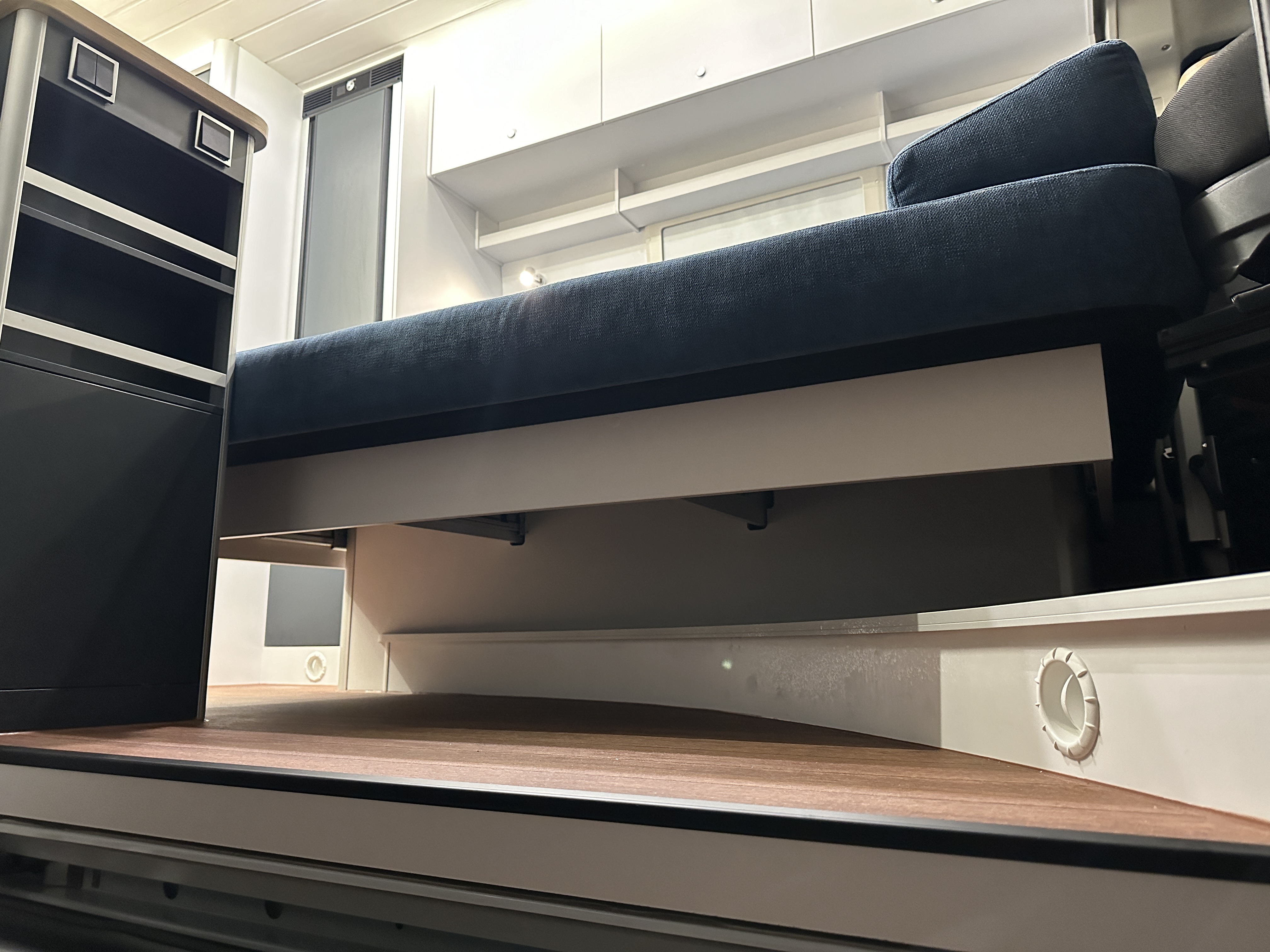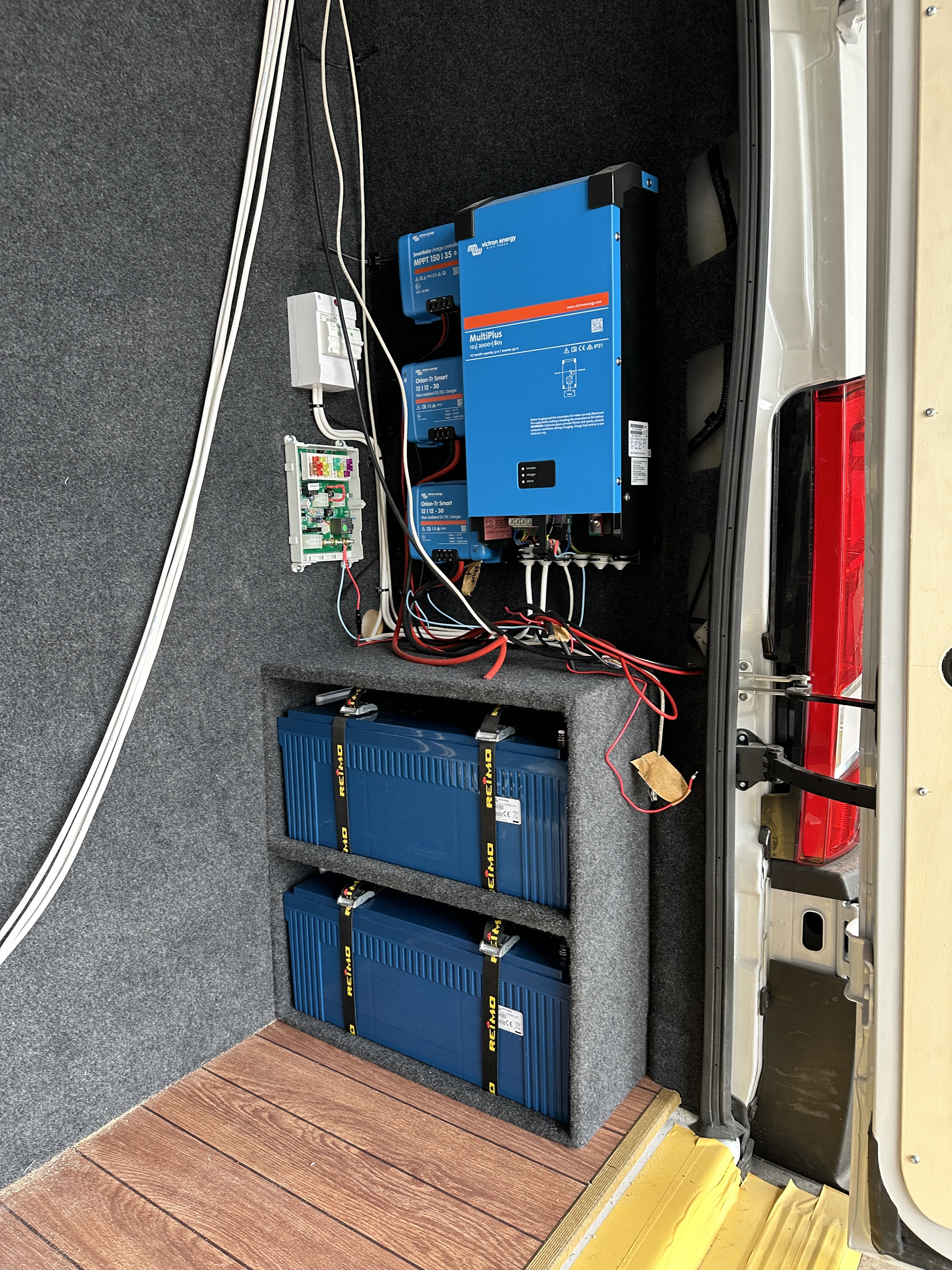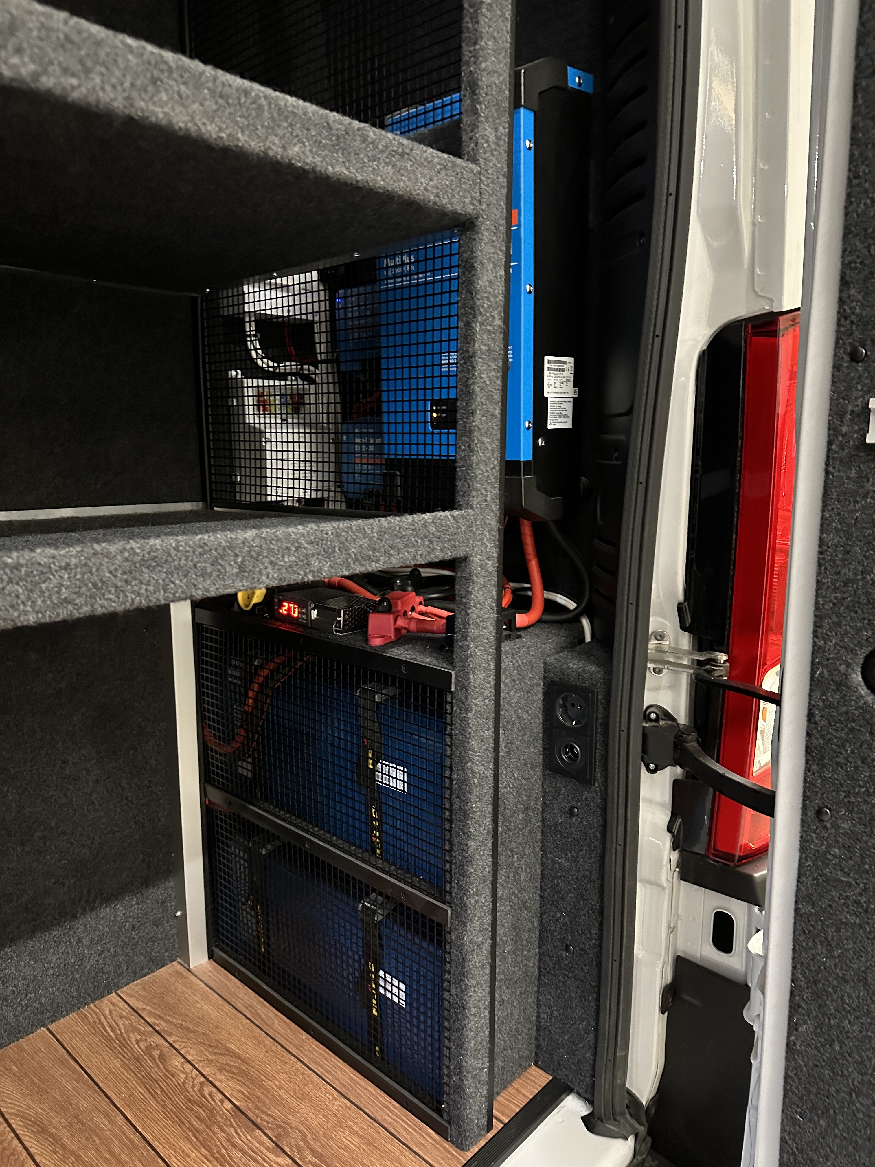 Ez a lakóautó hosszú távú lakhatásra készült, ügyfelünk egyedi igényei alapján, maximális kényelem és önállóság biztosításával. A megbízható energiaellátást 400Ah LiFePo4 akkumulátor és prémium Victron Energy rendszer biztosítja, amelyet négy 110W-os napelem egészít ki, így akár hosszabb ideig is önellátó marad, még távoli helyeken is. A belső térben kényelmes, franciaággyá alakítható kanapé, tágas konyhapult és komposztálós WC található, amelyek a lakóautó komfortját emelik. A dízel kombi kazán biztosítja a fűtést és a melegvízellátást, így a jármű minden évszakban otthonos érzetet nyújt. Az utazások során a beépített 5G antenna / router gondoskodik a gyors és stabil internetkapcsolatról, míg a külső kamerarendszer folyamatosan védi a lakóautót. A hátsó részben egy nagy tároló garázsrész került kialakításra, amely elegendő helyet biztosít különféle felszerelések számára. Emellett praktikus tárolóhelyek és átgondolt belső elrendezés segít abban, hogy minden szükséges eszköz kéznél legyen. Az intelligens világítási rendszer és az energiatakarékos megoldások tovább növelik a kényelmet, hogy ügyfelünk bárhol élvezhesse a modern élet luxusát, akár a városi forgatagtól távol, a természet közelségében.