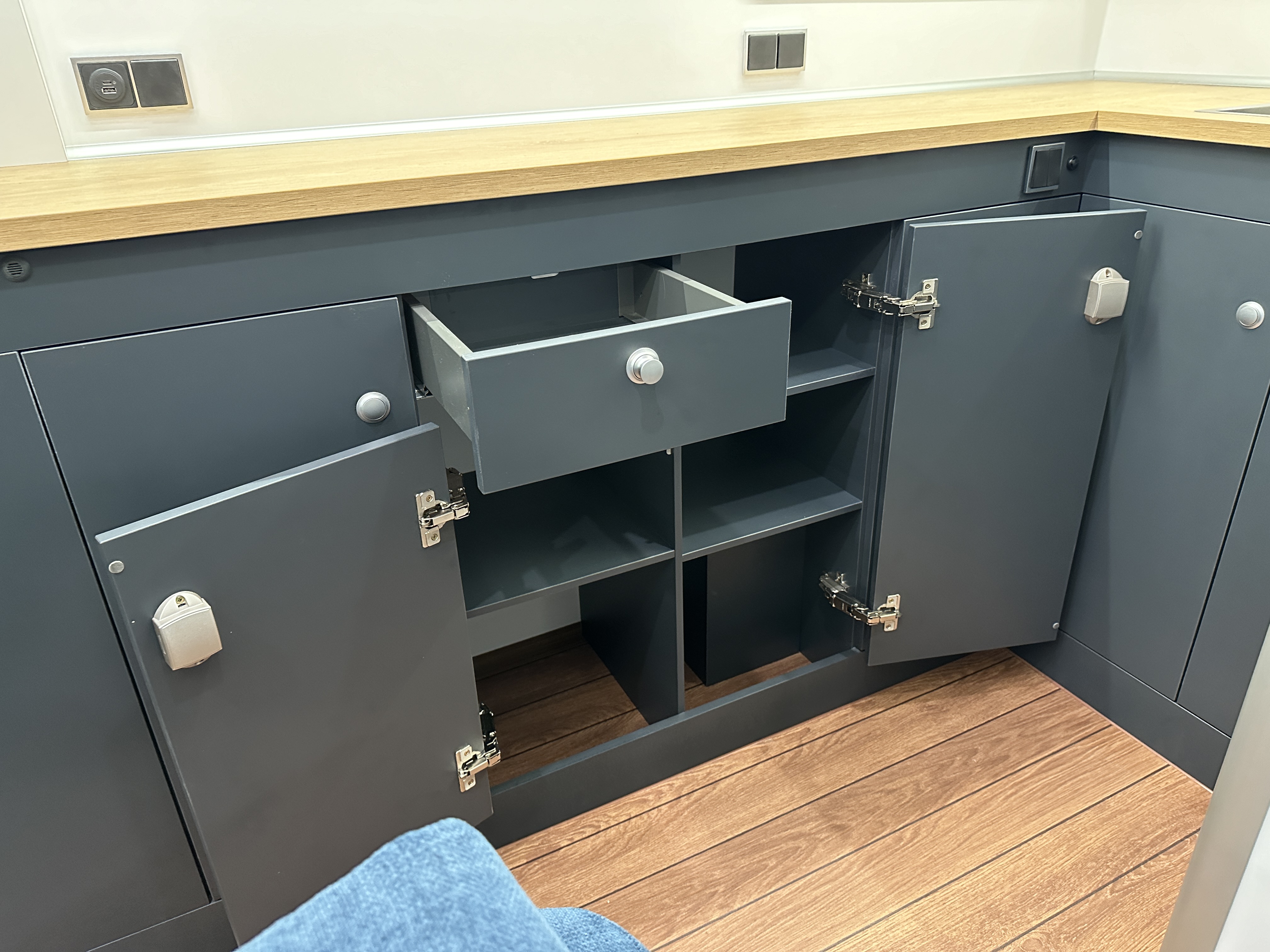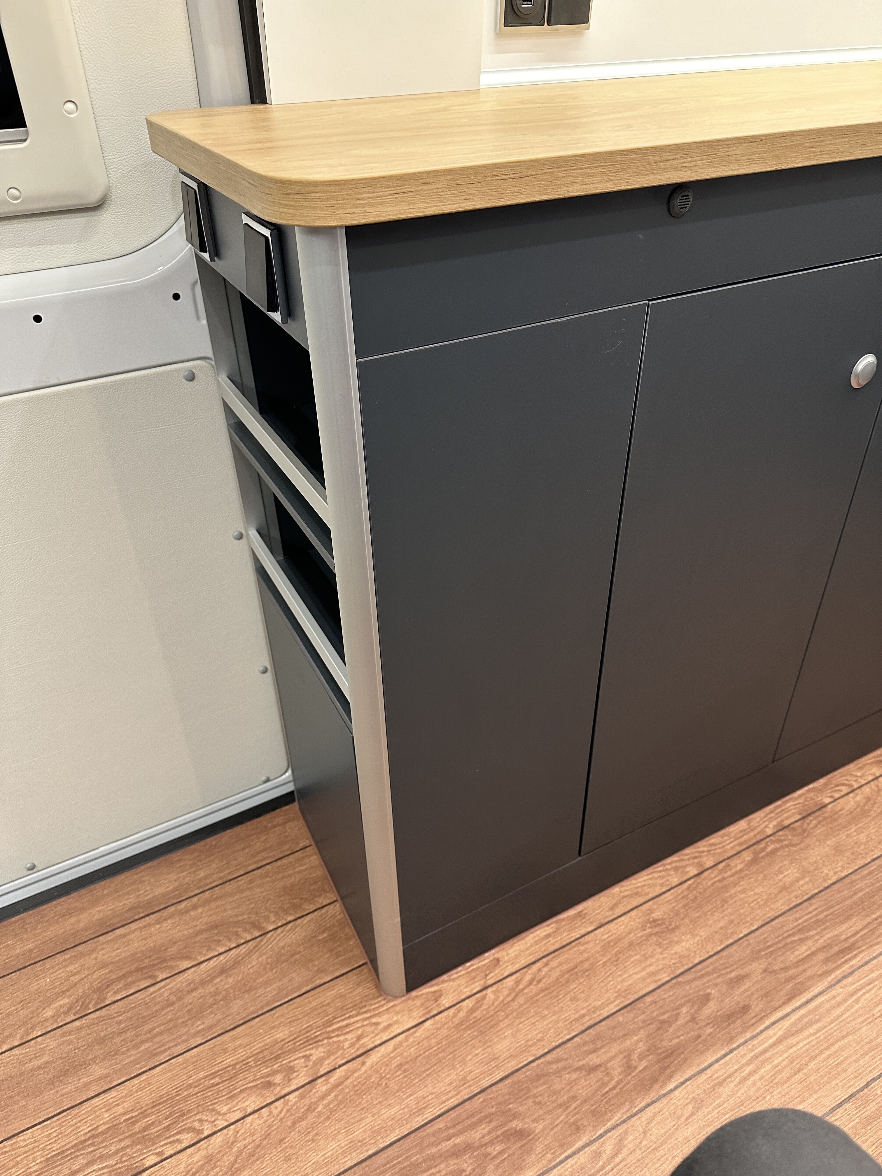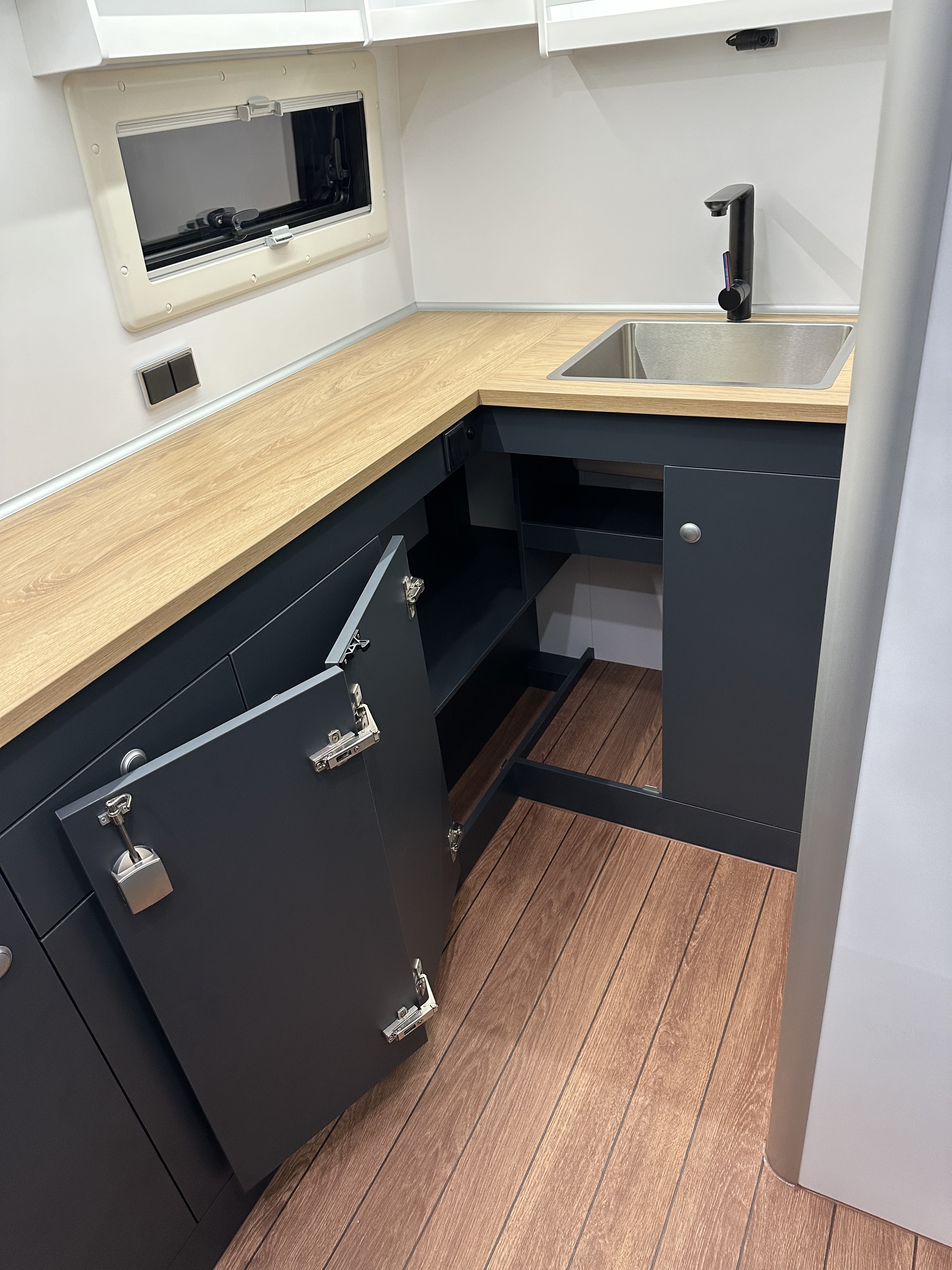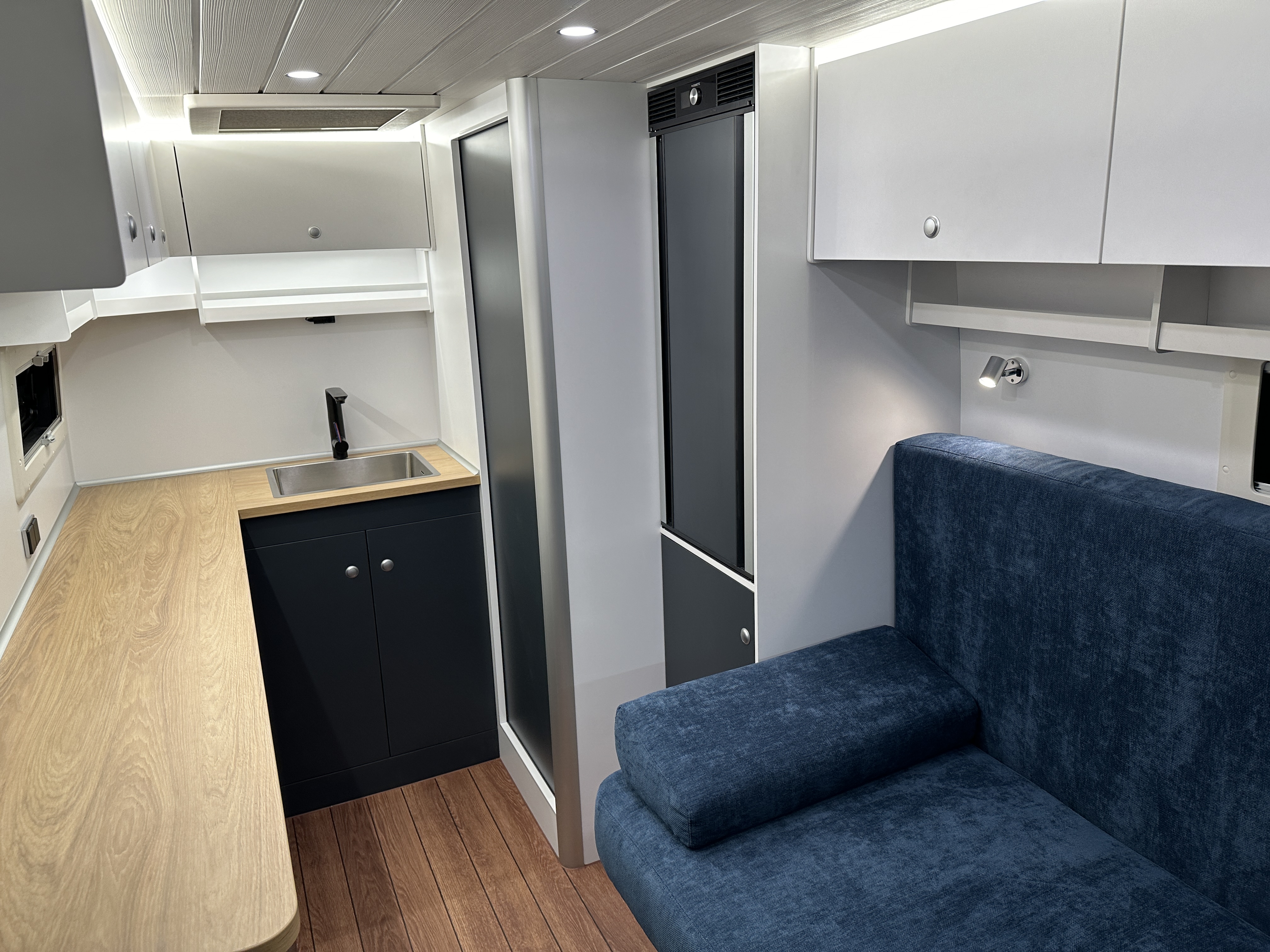 Ez a lakóautó hosszú távú lakhatásra készült, ügyfelünk egyedi igényei alapján, maximális kényelem és önállóság biztosításával. A megbízható energiaellátást 400Ah LiFePo4 akkumulátor és prémium Victron Energy rendszer biztosítja, amelyet négy 110W-os napelem egészít ki, így akár hosszabb ideig is önellátó marad, még távoli helyeken is. A belső térben kényelmes, franciaággyá alakítható kanapé, tágas konyhapult és komposztálós WC található, amelyek a lakóautó komfortját emelik. A dízel kombi kazán biztosítja a fűtést és a melegvízellátást, így a jármű minden évszakban otthonos érzetet nyújt. Az utazások során a beépített 5G antenna / router gondoskodik a gyors és stabil internetkapcsolatról, míg a külső kamerarendszer folyamatosan védi a lakóautót. A hátsó részben egy nagy tároló garázsrész került kialakításra, amely elegendő helyet biztosít különféle felszerelések számára. Emellett praktikus tárolóhelyek és átgondolt belső elrendezés segít abban, hogy minden szükséges eszköz kéznél legyen. Az intelligens világítási rendszer és az energiatakarékos megoldások tovább növelik a kényelmet, hogy ügyfelünk bárhol élvezhesse a modern élet luxusát, akár a városi forgatagtól távol, a természet közelségében.
