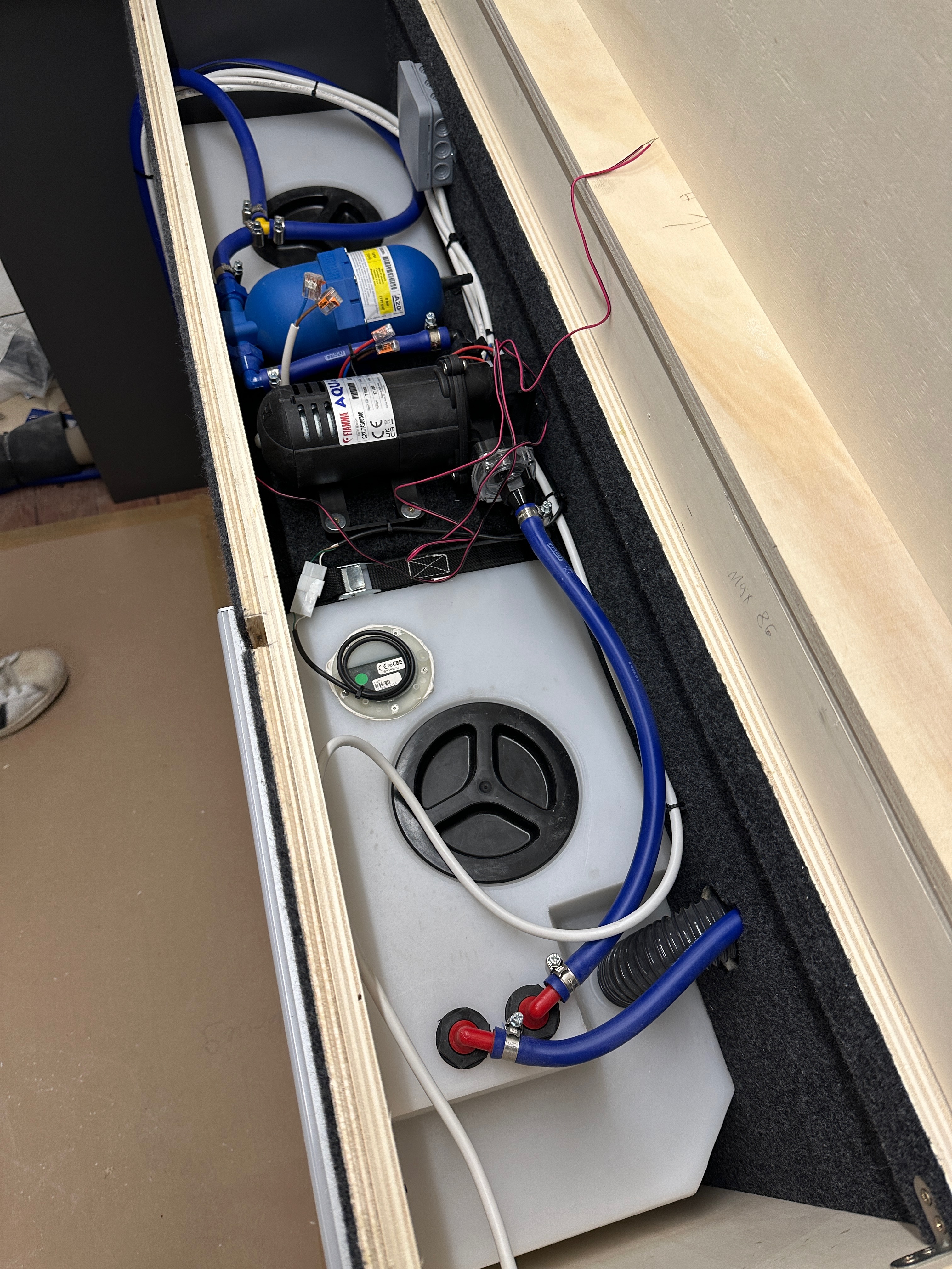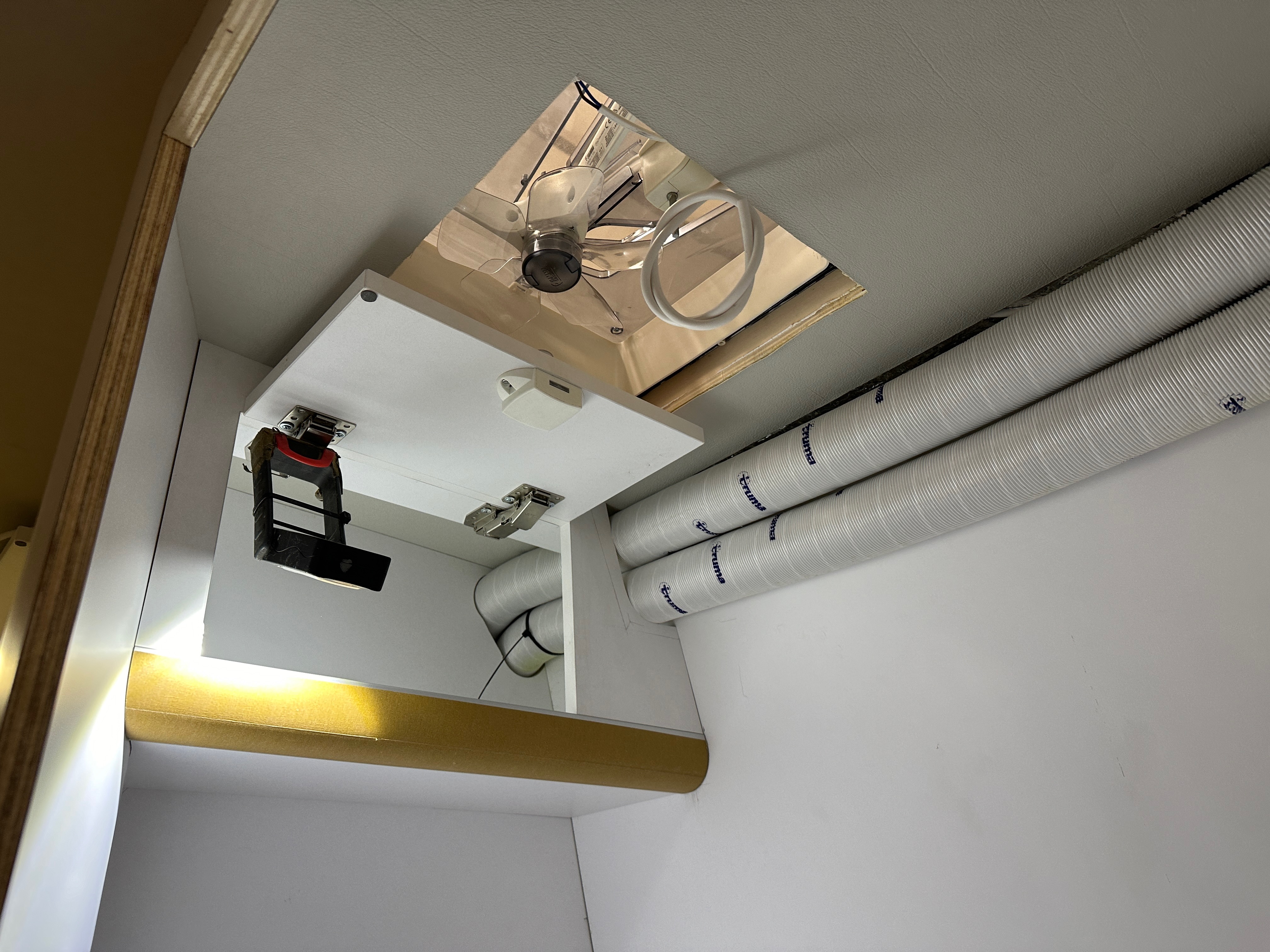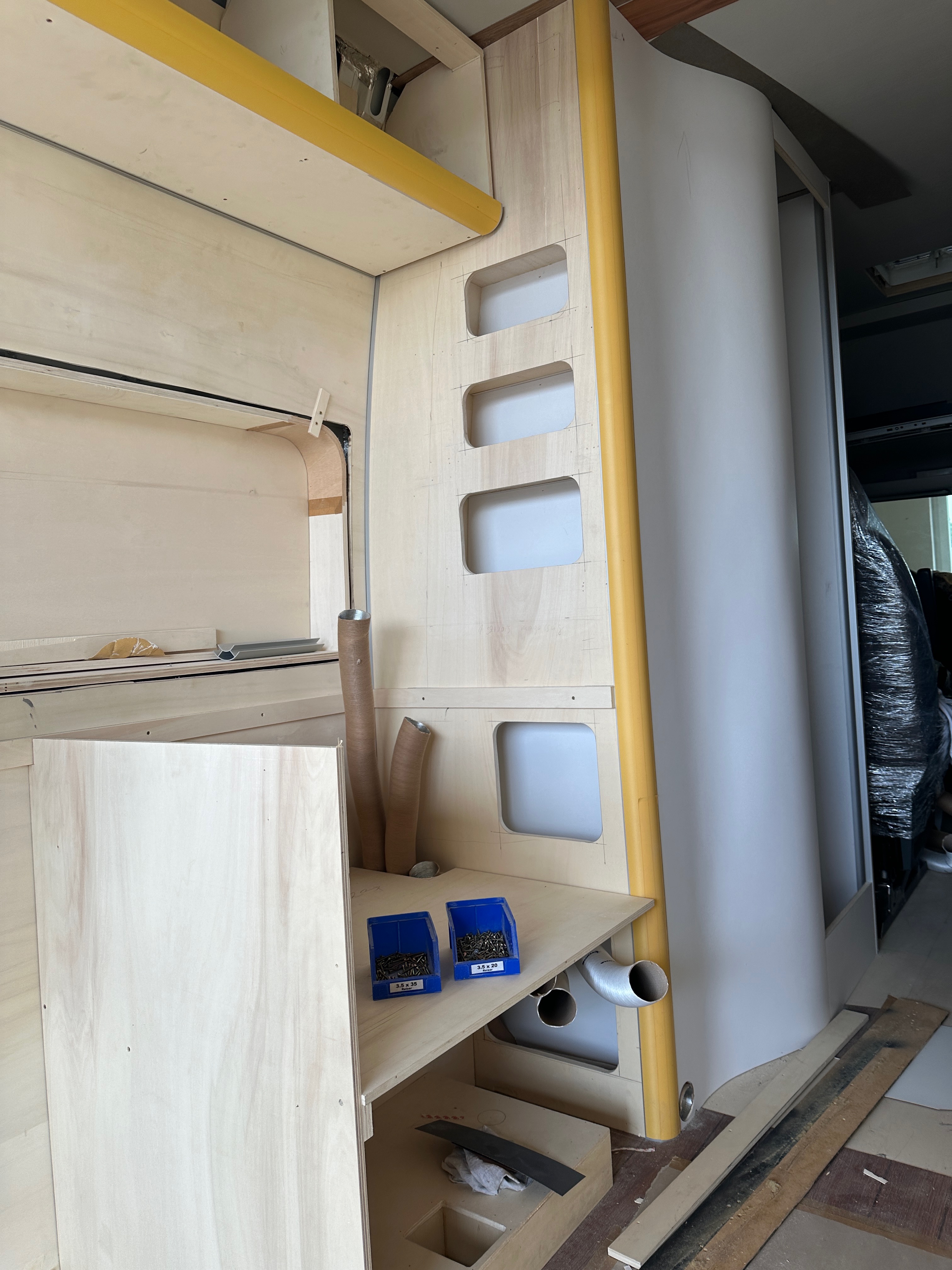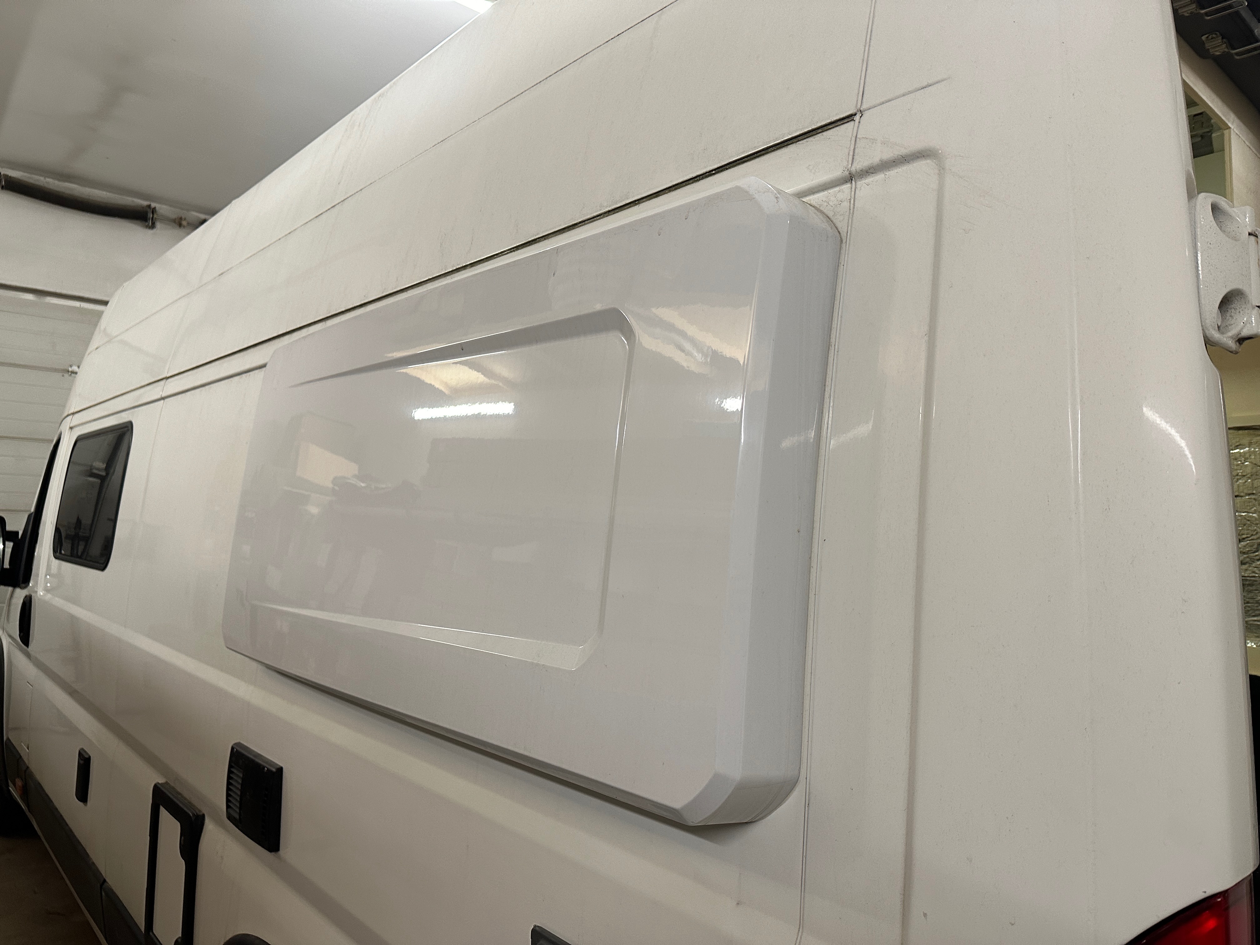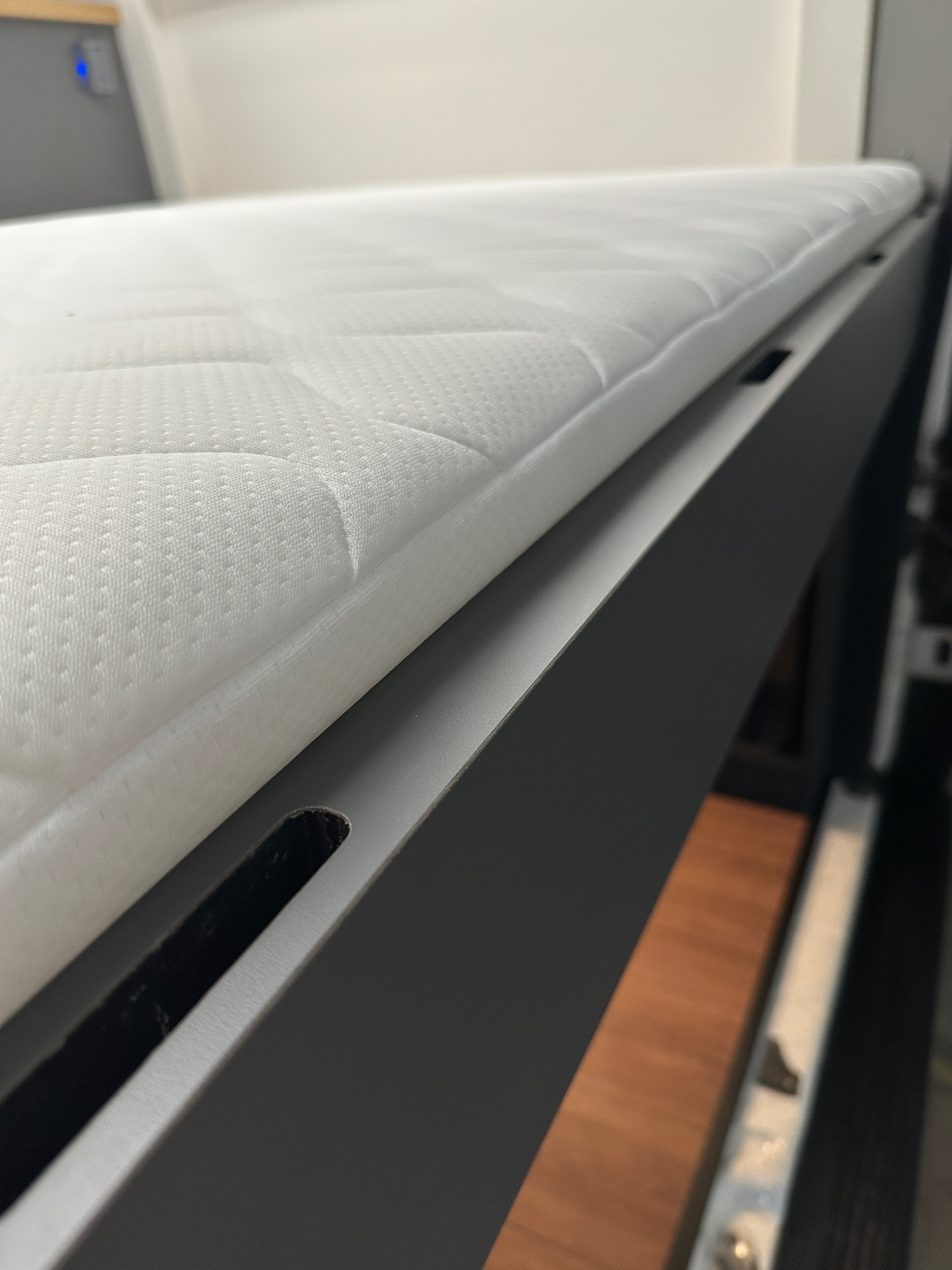 A világos, letisztult belső tér öt személy szállítására alkalmas, de az ötödik ülés könnyedén eltávolítható, így még tágasabb életteret biztosítva. A keresztirányban elhelyezett franciaágy a karosszéria bővítésének köszönhetően 2 méter hosszú, kényelmes alvóhelyet nyújtva. Számos rejtett tárolórekesz segíti a rendszerezést és a helykihasználást. A teljesen gázmentes kialakítású lakóautóban dízel kombi kazán és kompresszoros hűtő gondoskodik a fűtésről és hűtésről. A kényelmet tovább fokozza az állóhelyzeti klíma, amely biztosítja a megfelelő hőmérsékletet a pihenések során, valamint a beépített TV, amely szórakozást nyújt az utazások alatt. A tetőn elhelyezett napelemek lehetővé teszik az elektromos rendszerek önálló működtetését, függetlenül a külső áramforrásoktól. A belső tér kialakítása során különös figyelmet fordítottunk a praktikumra és a kényelemre, hogy hosszabb utazások során is otthonos környezetet biztosítson.