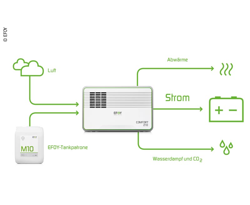 Az EFOY COMFORT folyamatosan figyeli a fedélzeti akkumulátor töltöttségi állapotát. Ha ez 12,3 V alá csökken, az EFOY COMFORT automatikusan bekapcsol és újratölti az akkumulátort. Amikor az akkumulátor megtelt, az EFOY COMFORT automatikusan visszakapcsol készenléti üzemmódba.