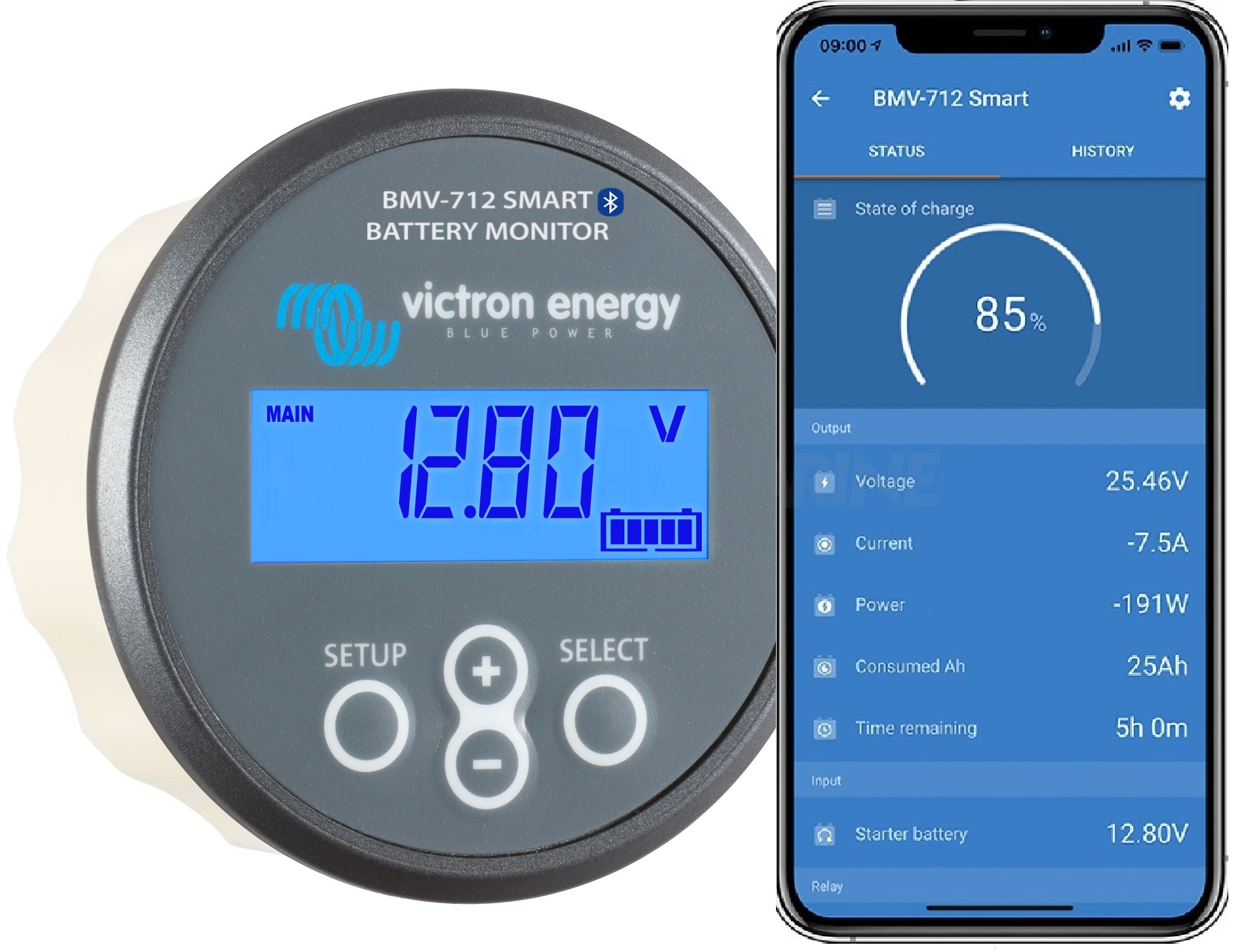 A beépített Bluetooth funkcióval rendelkező BMV Smart már felkészült a „dolgok internetének” (IoT) korszakára. Mivel a Victron Energy termékeinek a többségében jelen van a Bluetooth funkció, a termékek közötti vezeték nélküli kommunikáció leegyszerűsíti a rendszerek telepítését és a teljesítmény javítását.