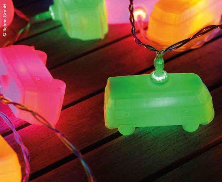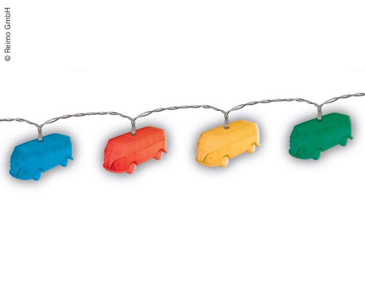 20 db-os színes LED világítással VW T1 lampion formákban. A 3 méter hosszú füzér, meleg és kellemes fényt ad. Akár otthon, akár a kertben, akár kempingben, használható az elemek működésének köszönhetően. 3db AAA elemmel működik, ami nem tartozék. Méret: 7 x 3 x 3,2 cm.
