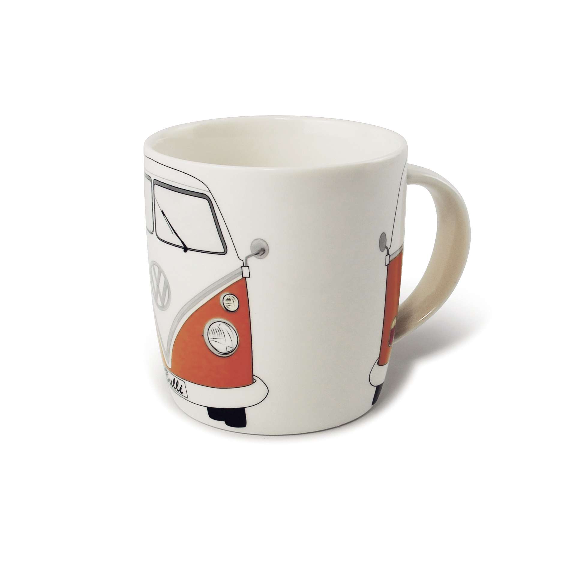 A New Bone China-ból készült szemet gyönyörködtető bögre, narancssárga színű, legendás VW T1 busz elejét ábrázolja. Kiváló minőségű, szép alakja és megjelenése hozzáad egy eredeti megjelenést a reggeli asztalhoz! Egy vonzó díszdobozban csomagolva ez is nagy ajándék lehet. Méret: h = 9,3