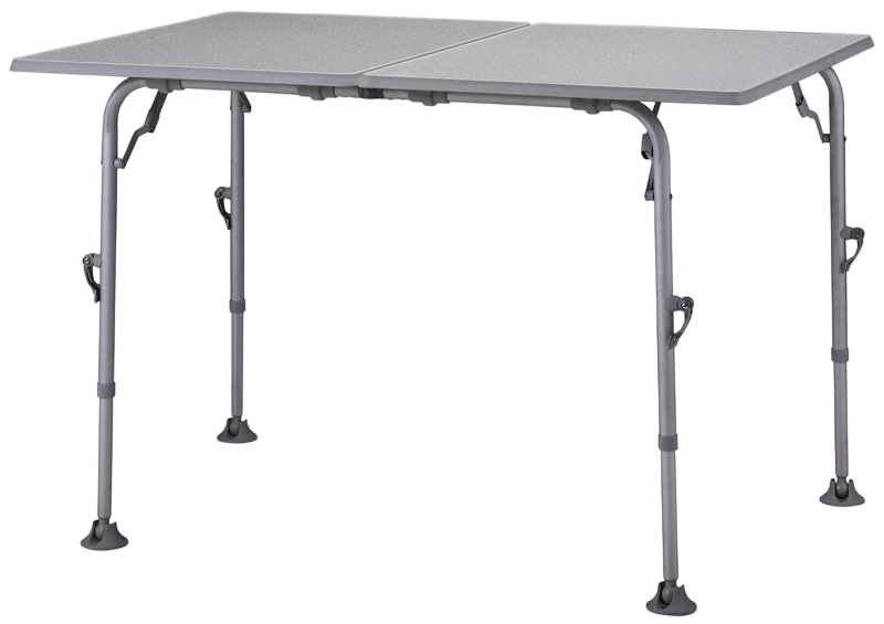 Stílus és stabilitás, bárhol is járjon. Ez az asztal nem ismer kompromisszumokat: időjárásálló, világos asztallapja nemcsak esztétikus, de a környezeti hatásoknak is ellenáll. A masszív szerkezet akár 30 kg-os terhelést is könnyedén bír, miközben a nagy felületű, lapos talpak garantálják, hogy az asztal még puha talajon sem süllyed meg. A váratlan bukkanók sem jelentenek akadályt: a külön-külön állítható lábaknak köszönhetően bármilyen egyenetlen terepen tökéletesen vízszintbe állítható.