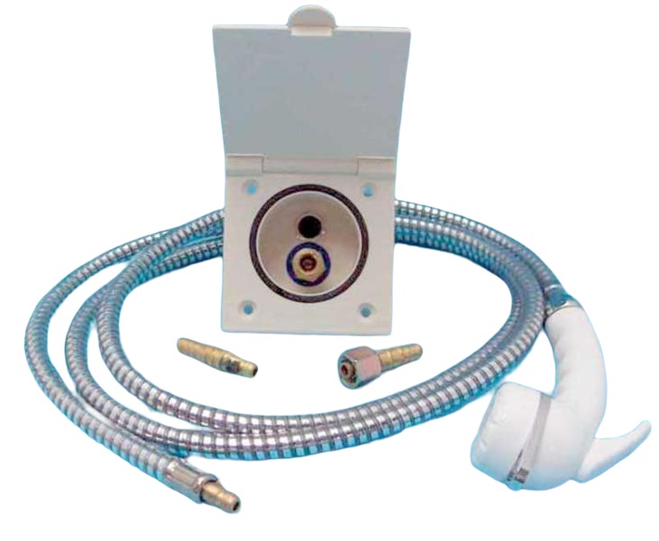 Zuhanykészlet állítható fehér zuhannyal, 2m tömlővel, gyorscsatlakozóval.